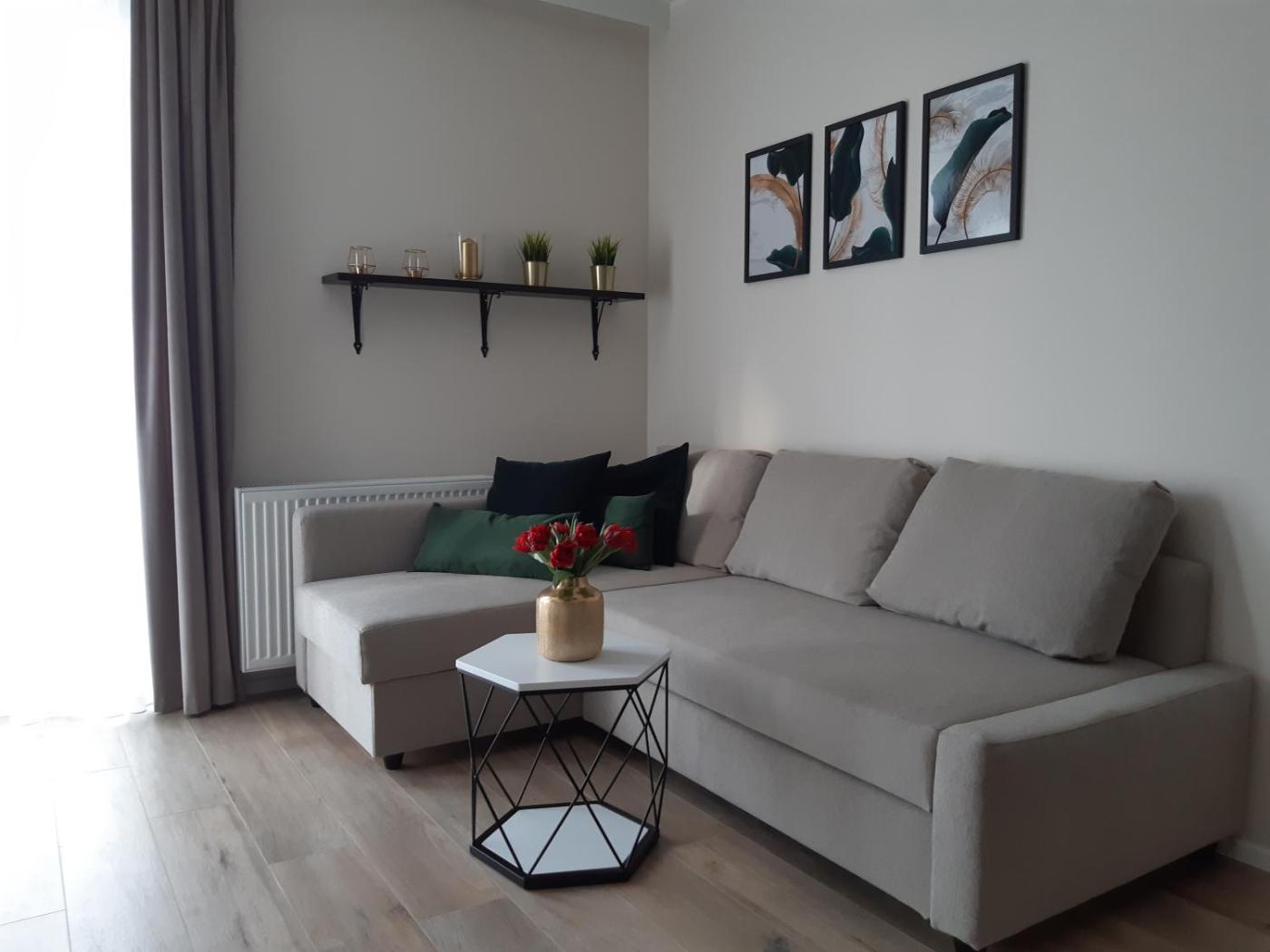 Apartament z 1 sypialnią. Guests can make meals in the kitchenette that features a stovetop, a refrigerator, a dishwasher and kitchenware. The apartment features a flat-screen TV with cable channels, a washing machine, a private entrance, a tea and coffee maker as well as ancourtyard view. The unit has 2 beds. Apartament - 4 osobowy. Powierzchnia pokoju ok.: 44 mkw.