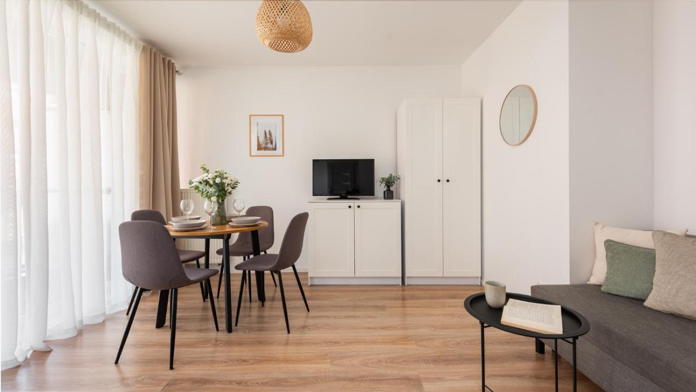 Apartament typu studio. Boasting a private entrance, this apartment also includes 1 bedroom, a seating area and 1 bathroom with a bath and a shower. In the well-fitted kitchenette, guests will find a stovetop, a refrigerator, a dishwasher and kitchenware. Featuring a balcony with garden views, this apartment also offers a washing machine and a flat-screen TV. The unit has 2 beds. Apartament - 3 osobowy. Powierzchnia pokoju ok.: 35 mkw. ;