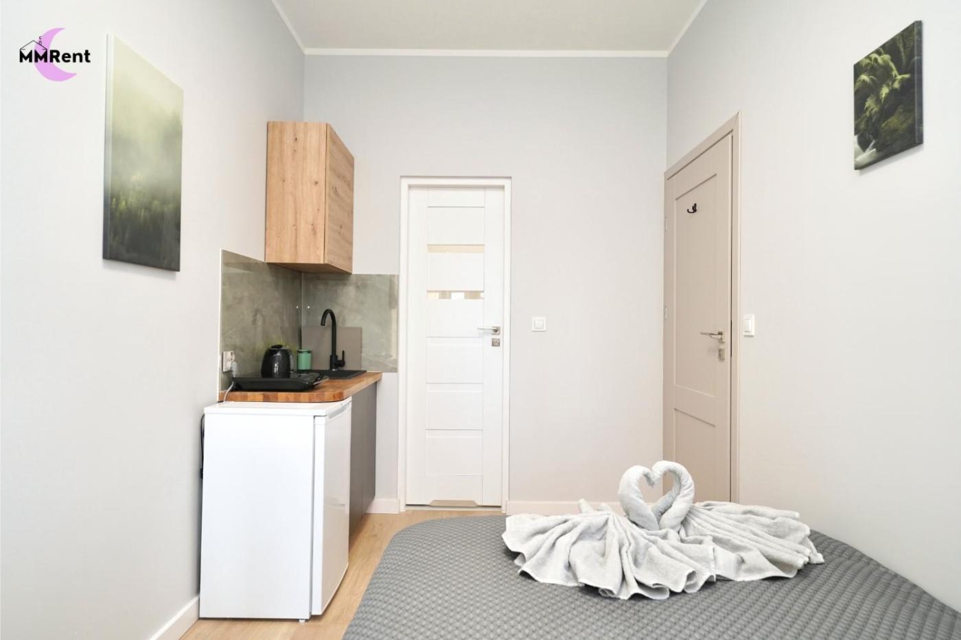 Room #1547905001. Guests can make meals in the kitchenette that has a stovetop, a refrigerator and kitchenware. The studio features a washing machine, an electric kettle, as well as a private bathroom boasting a shower and a hairdryer. The unit has 1 bed. Studio - 2 osobowy. Powierzchnia pokoju ok.: 16 mkw.