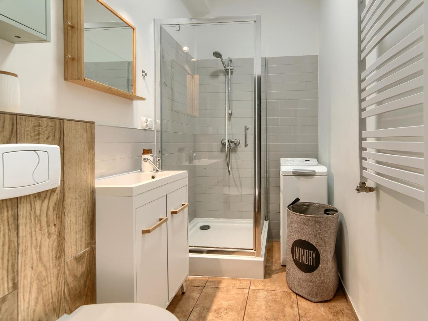 Apartament z 1 sypialnią. Featuring a private entrance, this apartment comprises 1 living room, 1 separate bedroom and 1 bathroom with a shower and a hairdryer. Guests can make meals in the kitchen that is equipped with a stovetop, a refrigerator, kitchenware and a microwave. The apartment provides a washing machine, a tea and coffee maker, a seating area, a flat-screen TV, as well as city views. The unit offers 2 beds. Apartament - 4 osobowy. Powierzchnia pokoju ok.: 38 mkw.