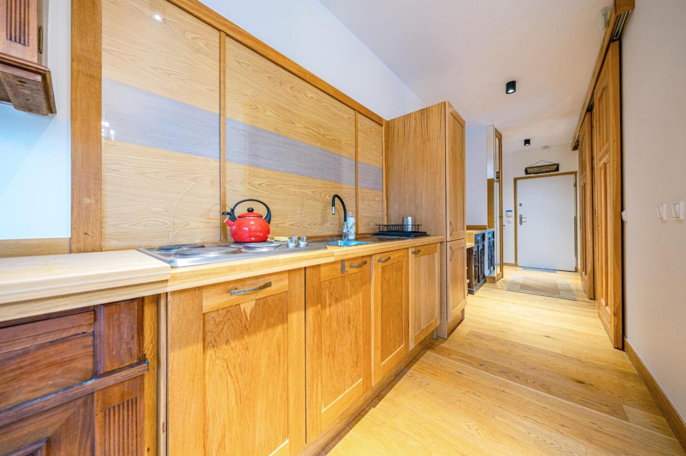 Apartament znajduje się na parterze. Na miejscu zapewniono sypialnię (1), telewizor z płaskim ekranem z dostępem do kanałów satelitarnych oraz aneks kuchenny z pełnym wyposażeniem, w tym lodówką, zmywarką, pralką, mikrofalówką i płytą kuchenną. W apartamencie zapewniono ręczniki i pościel.