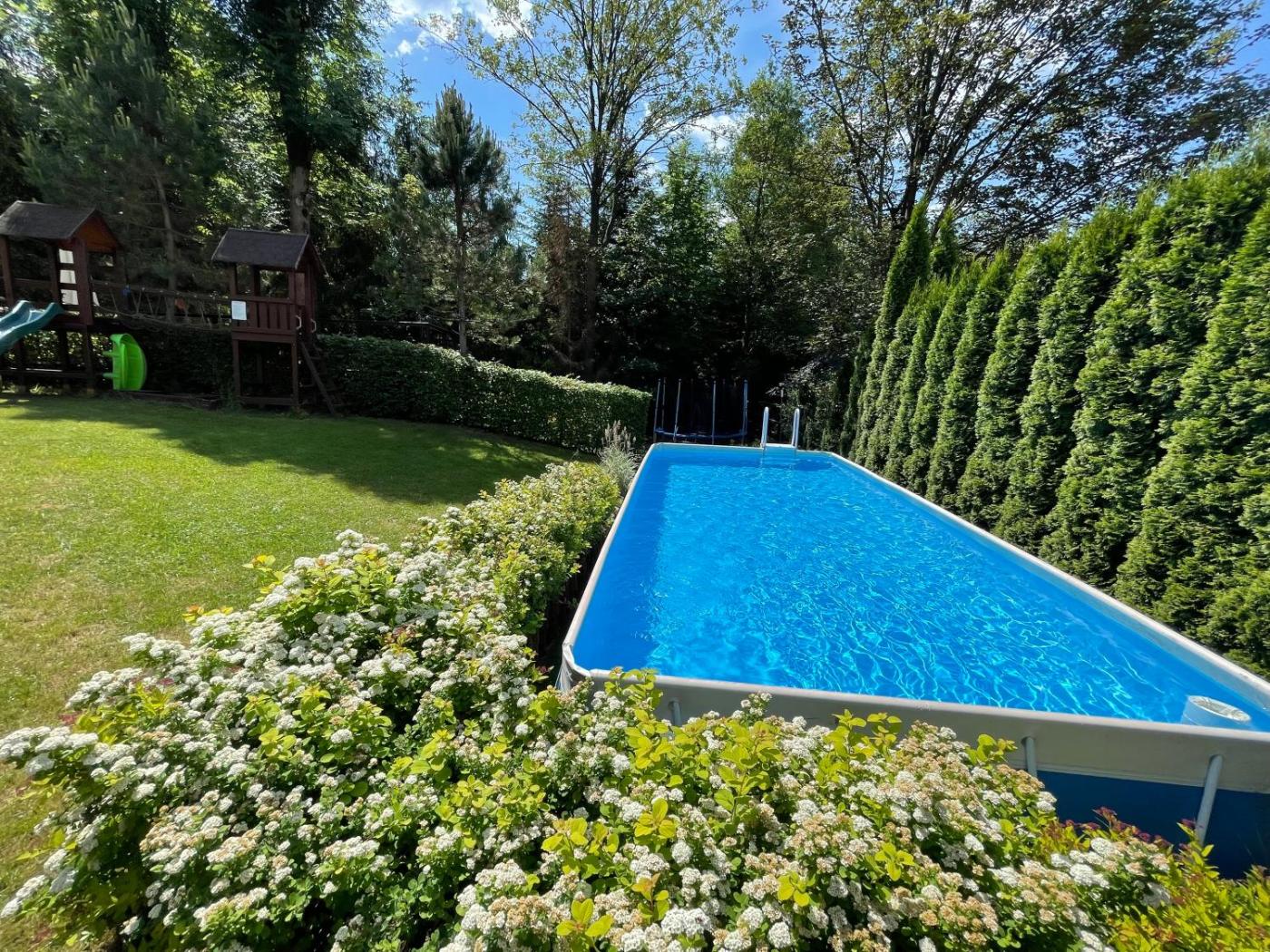 Pokój Trzyosobowy typu Standard. This triple rooms standout feature is the pool with a view. The triple room offers soundproof walls, a wardrobe, as well as a private bathroom featuring a shower and a hairdryer. The triple room provides an electric kettle, a barbecue, a high chair for children, a flat-screen TV, as well as garden views. The unit offers 2 beds. Pokój Trzyosobowy - 4 osobowy. Powierzchnia pokoju ok.: 24 mkw.